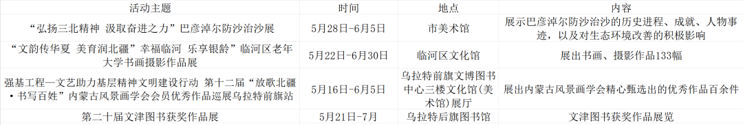 活动内容:展示巴彦淖尔防沙治沙的历史进程、成就、人物事迹以及对生态环境改善的积极影响