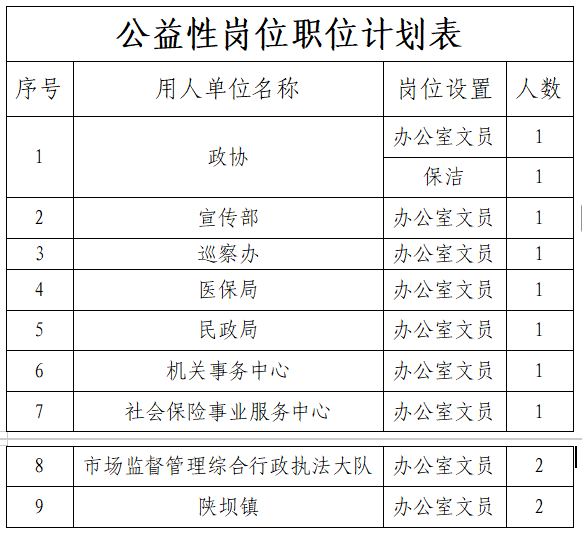 为进一步促进就业困难人员实现就业,按照内蒙古自治区人力资源和社会保障厅和财政厅《关于进一步做好公益性岗位开发管理有关工作的通知》(内人社办发〔2020〕50号)、内蒙古自治区人力资源和社会保障厅《内蒙古自治区就业困难人员认定办法》(内人社办发〔2020〕58号)文件精神,因已安置的公益性岗位人员辞职等原因,面向社会公开招聘公益性岗位工作人员。现将招聘原则及招聘有关情况公示如下: