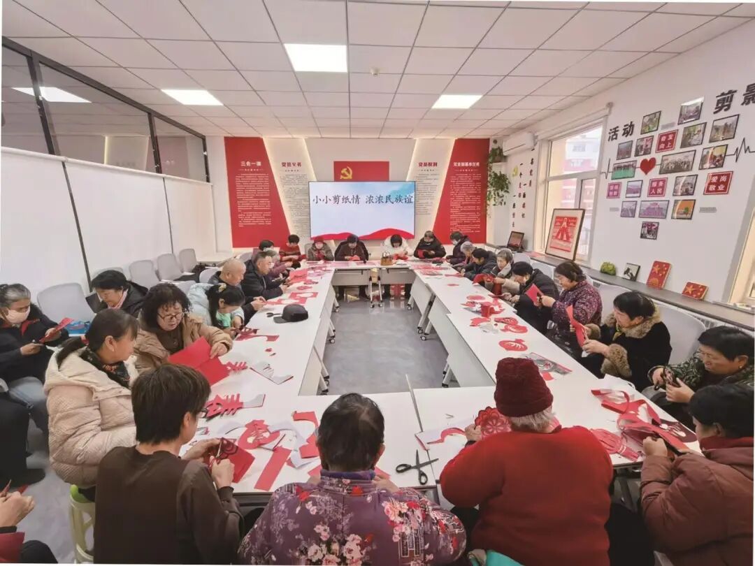 早上8点,78岁的潘桂珍老人收拾妥当,来到磴口县巴彦高勒镇西环社区党群服务中心,剪纸课教室里已是座无虚席。20多位居民一手拿着红纸、一手握着剪刀,在老师的指导下,低头专注创作。